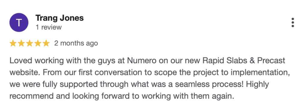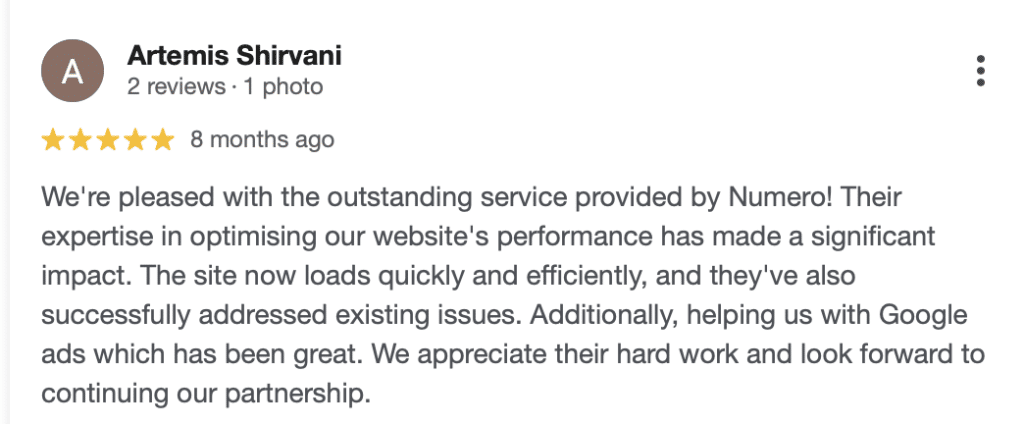 Do not choose the cheapest website designer. numero’s team work as hard on your website’s speed, performance and search engine optimisation as they do on the design. You are buying the full sweep of our expertise in performance marketing when we build your business website.
